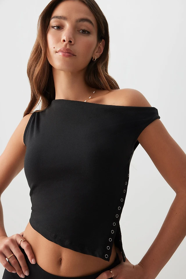 Ardene Asymmetrical Off Shoulder T-Shirt in | Size | Polyester/Spandex