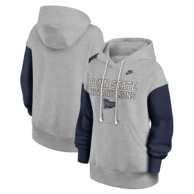 Women's Nike Heather Gray/Navy Penn State Nittany Lions Oversized Legacy Phoenix Pullover Hoodie