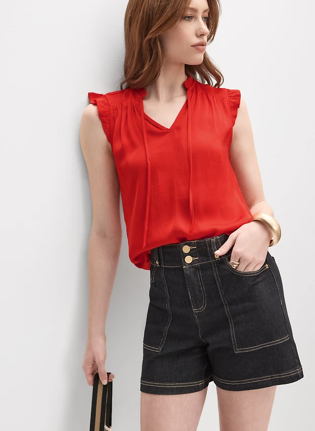 Petite Knit Shoulder Trim T-Shirt in Terracotta