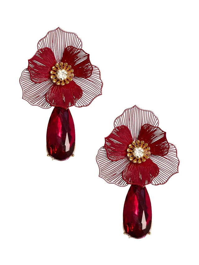 Pink Flower Mixed Silver-tone Stud Earrings - 9 Pack