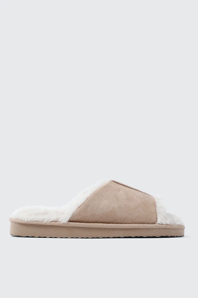 Ardene Open Toe Faux Suede Slippers in Beige | Size | Eco-Conscious