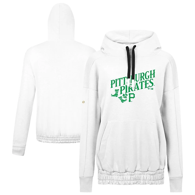 Women's Levelwear White Pittsburgh Pirates St. Patrick's Day Waterfall Boots Pullover Hoodie
