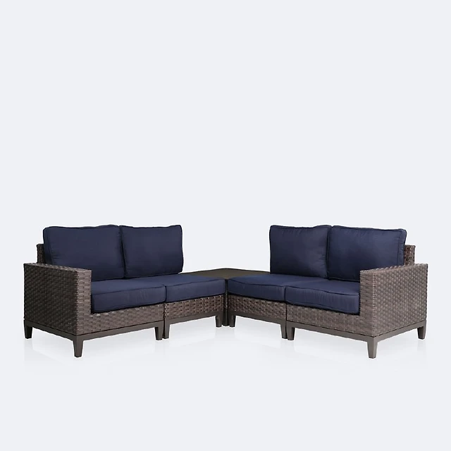Catalina Coffee Table Corner Sectional - Taupe/Grey Wicker-Grey Cushions