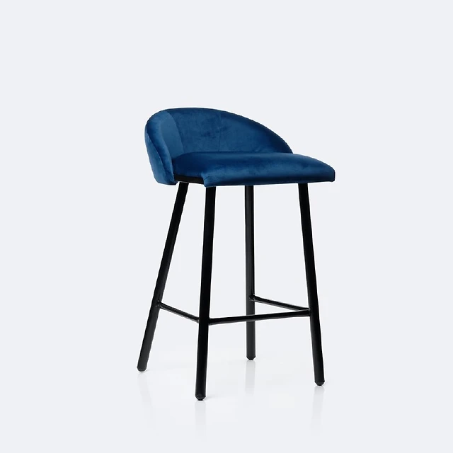 Fabric and Natural Wood Bar Stool