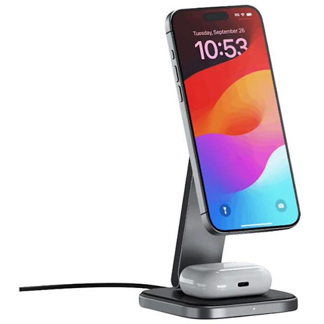 Satechi 2-in-1 Foldable 15W Qi2 Wireless Charging Stand - Space Grey