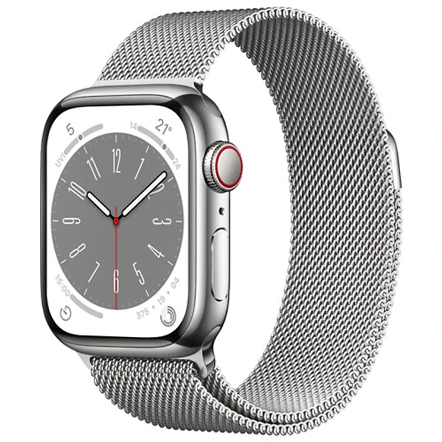 Koodo Apple Watch Series 8 (GPS + Cellular) 41mm Silver Stainless Steel Case with Silver Milanese Loop - Small/Medium - Monthly Tab Payment