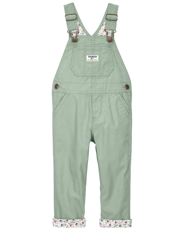 Toddler Girl Floral Lined Lightweight Canvas Overalls