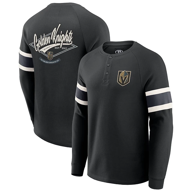 Men's Darius Rucker Collection by Fanatics Black Vegas Golden Knights Waffle-Knit Raglan Long Sleeve Henley T-Shirt