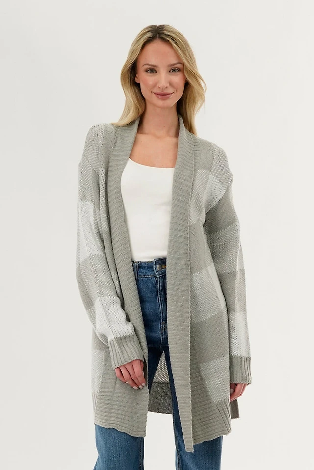 Canada Weather Gear Printed Knit Open Cardigan - Grey