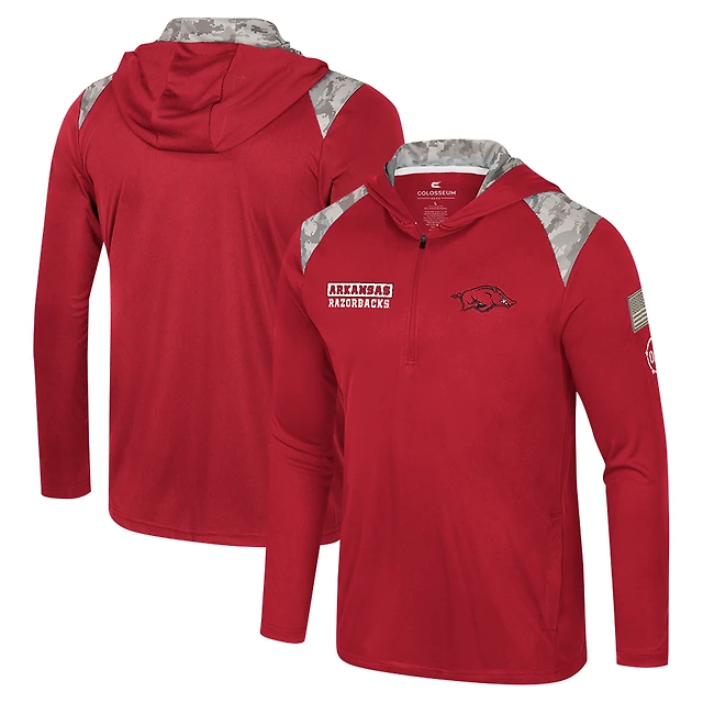 Men's Colosseum Cardinal Arkansas Razorbacks OHT Military Appreciation Quarter-Zip Hoodie Jacket