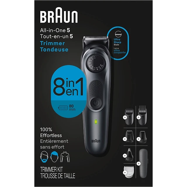 All-In-One Style Kit Series 5 5471, 8-in-1 Trimmer for Men with Beard Trimmer, Body Trimmer for Manscaping, Hair Clippers & More, Ultra-Sharp Blade, 40 Length Settings, Rechargeable 80-minute Battery Cordless Runtime and 100% Waterproof