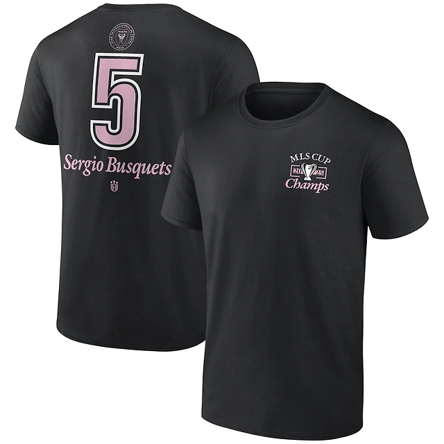 Men's Sergio Busquets Black Inter Miami CF 2025 MLS Cup Champions Name & Number T-Shirt