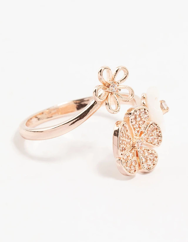 Rose Gold Flower Vine Cubic Zirconia Rings 2-Pack