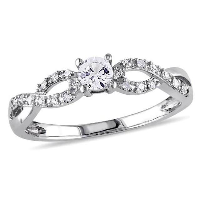 Julianna B 10K White Gold Created White Sapphire & Black 0.06CTW Diamond Ring