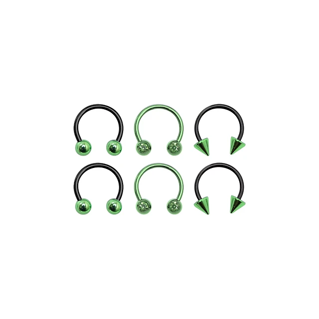 Multi-Pack Ombre Black and Purple Horseshoe and Captive Rings 6 Pack - 16 Gauge