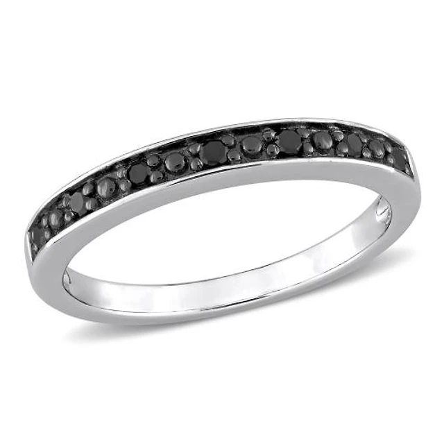 Black Diamond Accent Band Sterling Silver and Rhodium