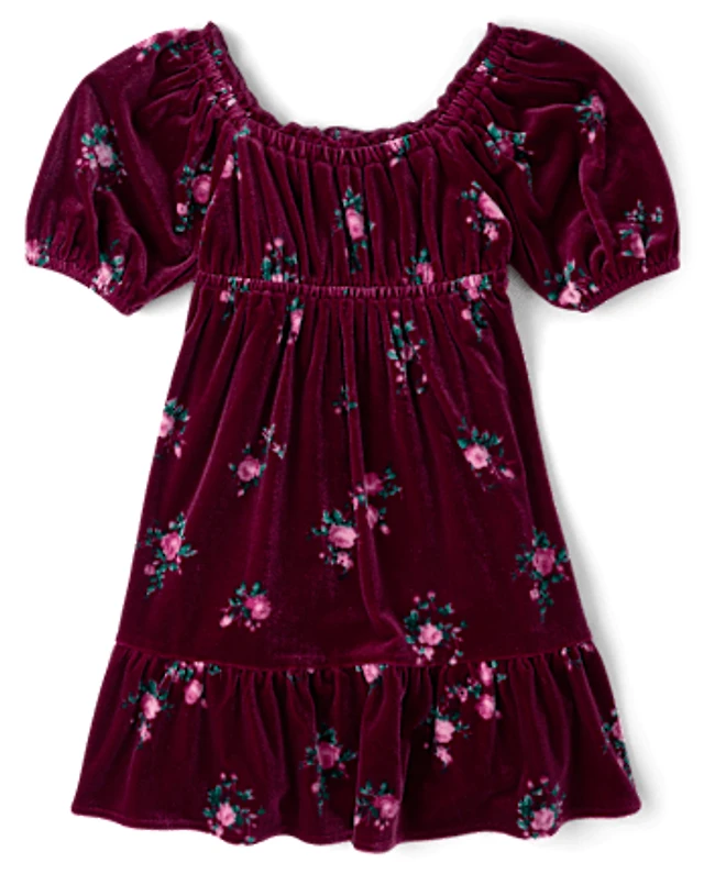 Girls Floral Velour Babydoll Dress