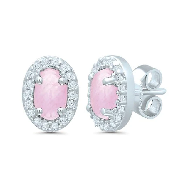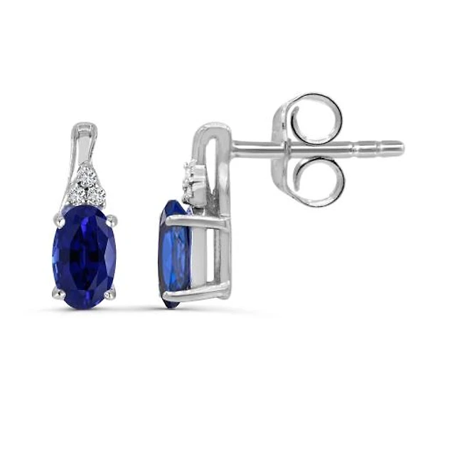 Miabella Created White Sapphire Solitaire Oval Stud Earrings in Sterling Silver