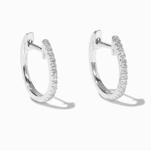 Pandora Era 14k White Gold Micro Lab-grown Diamond Pavé Hoop Earrings