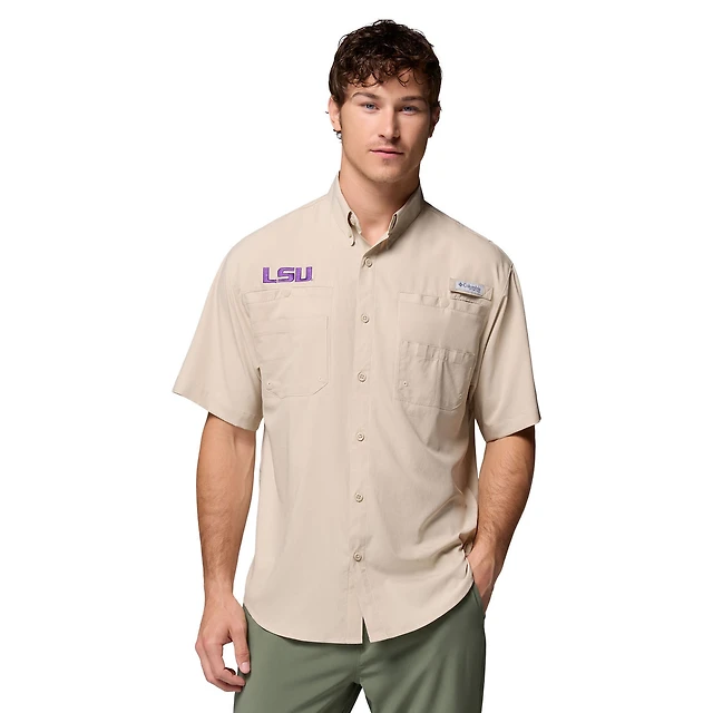 Men's Columbia Purple LSU Tigers Tamiami Colorblock Omni-Shade Button-Down Shirt