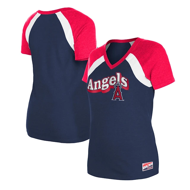 Women's New Era Navy Los Angeles Angels Heathered Raglan V-Neck T-Shirt
