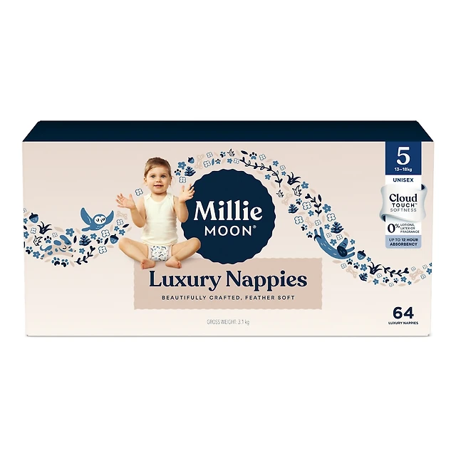 Millie Moon Luxury Diapers, Size 5, 64 Count