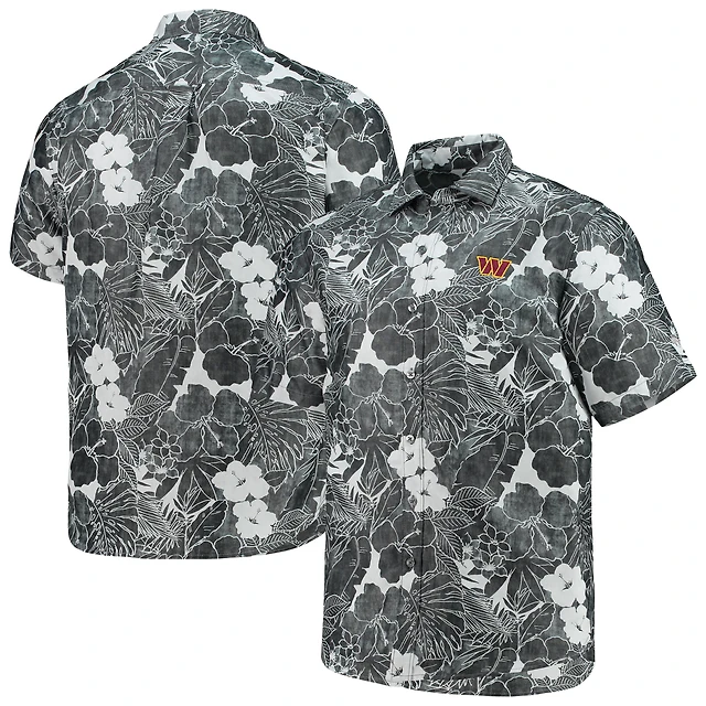 Men's Tommy Bahama Black Carolina Panthers Sport Harbor Island Hibiscus Camp Button-Up Shirt