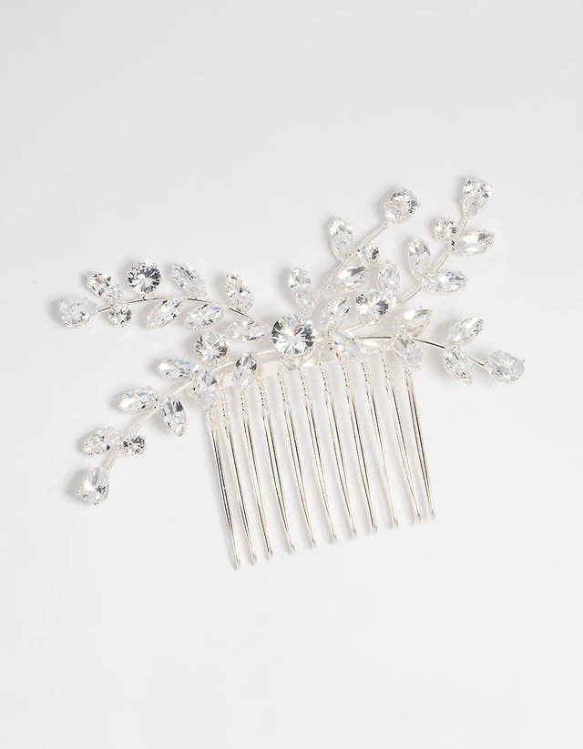 Silver Diamante Leaf Hair Comb