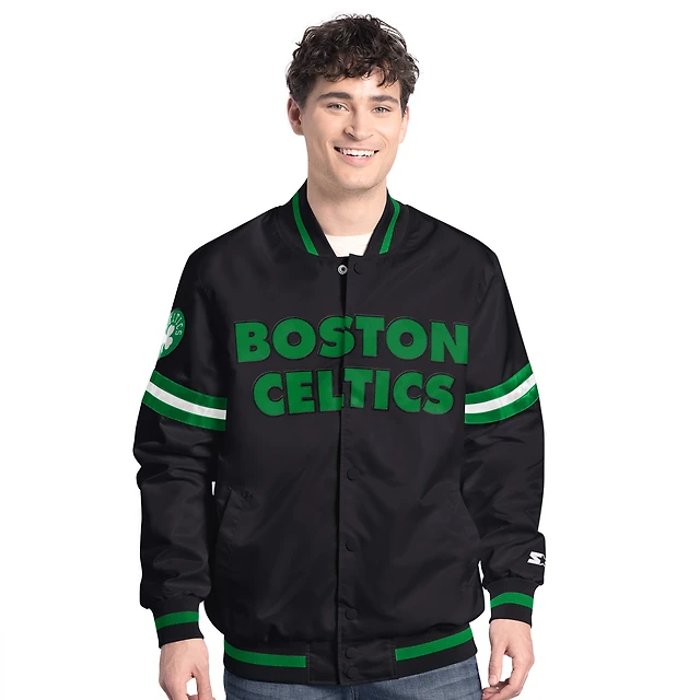 Men's Starter Black Boston Celtics Scout Varsity Full-Snap Jacket