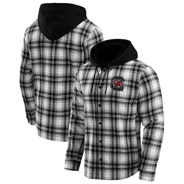 Men's Darius Rucker Collection by Fanatics Black South Carolina Gamecocks Plaid Flannel Quilted Full-Snap Hooded Shacket