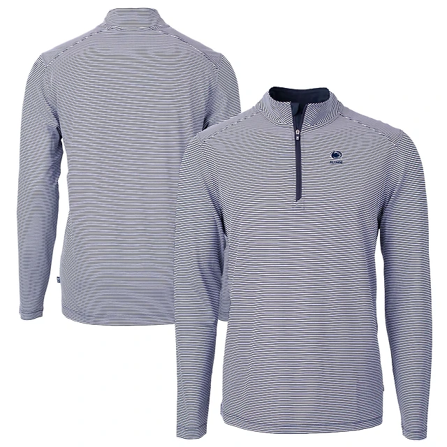 Men's Cutter & Buck Navy Penn State Nittany Lions Alumni Logo DryTec Virtue Eco Pique Micro Stripe Recycled Quarter-Zip Pullover Top