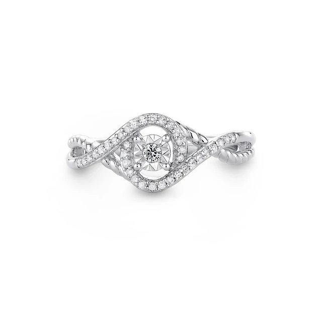 0.04 CT. T.W. Multi-Diamond Swirl Twist Shank Promise Ring Sterling Silver