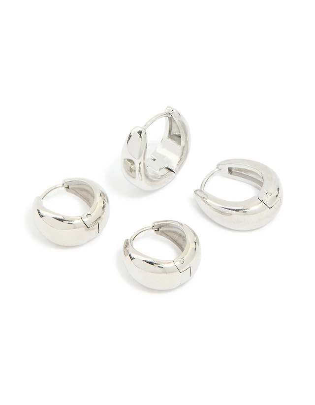 Gold Plated Brass Small & Medium Huggie Earrings 2-Pack