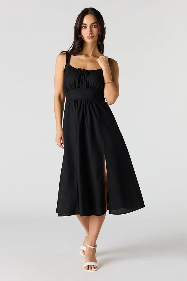 Linen Dress with Ruffle Collar