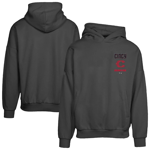 Men's Levelwear Black Cincinnati Reds City Connect Contact Baseline Oversized Pullover Hoodie