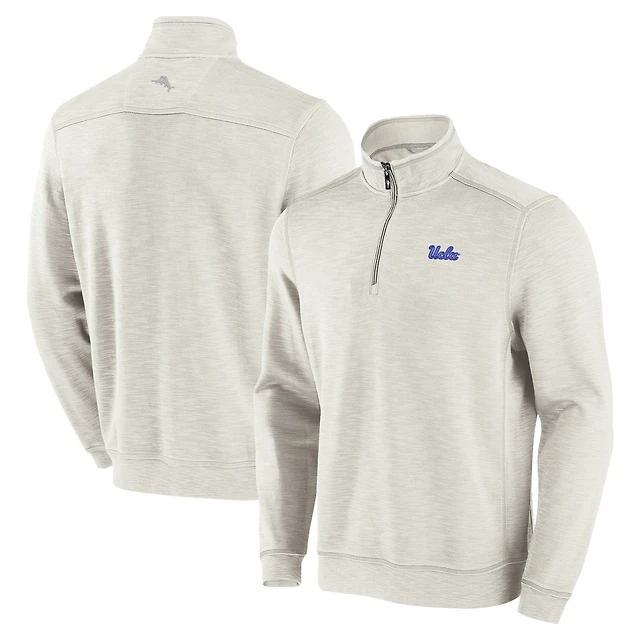 Men's Tommy Bahama Cream UCLA Bruins Tobago Bay Half-Zip Tri-Blend Top