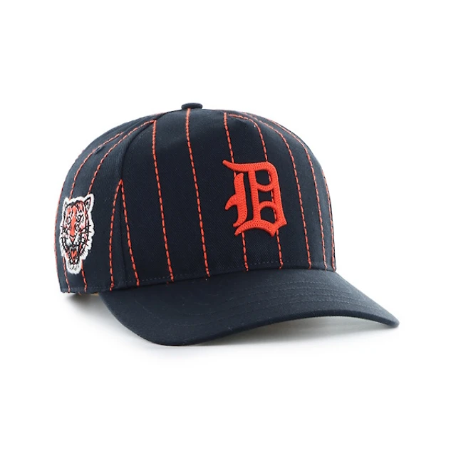Detroit Tigers Rawlings Pinstripe ’47 Hitch Adjustable Hat – Navy/Orange