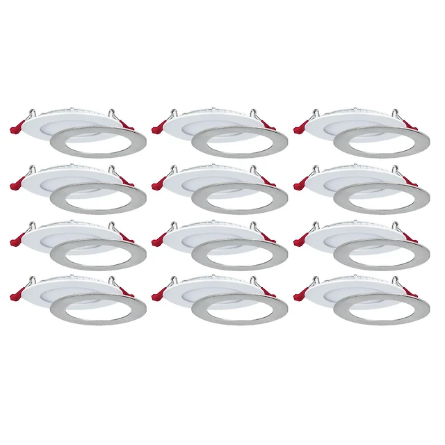 Nadair, 4’’ LED Recessed Ultra Slim Lights, 3 Built-in Color Temperature (3K/4K/5K), 12-Pack, IC Rated, Dimmable, 12W=80W, 900 Lumens, Quick Connect System, White Finish / Brushed nickel trim included