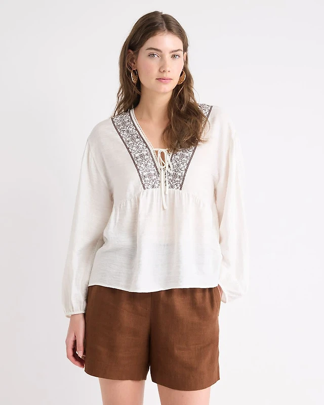 Ardene Contour V-Neck Long Sleeve T-Shirt in | Size | Elastane/Polyamide