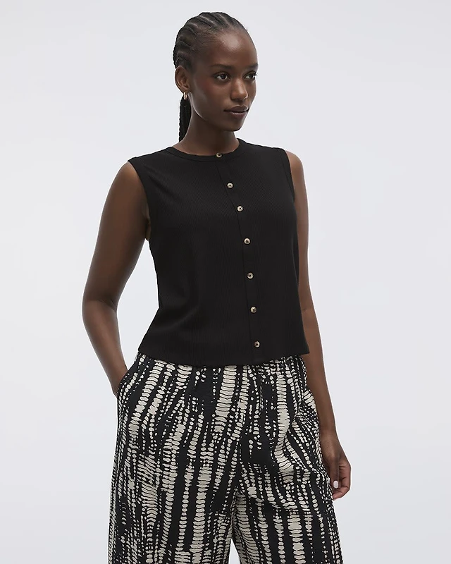 Short-Sleeve Crew-Neck Ribbed Sweater