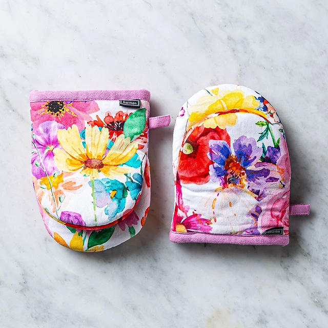 Harman Gourmet 'Mixed Floral' Cotton Mini Oven Mitt Set/2