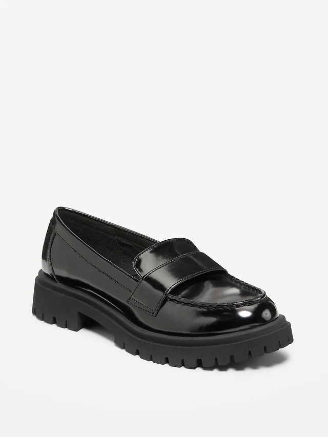 Faux-Leather Heeled Loafers for Women