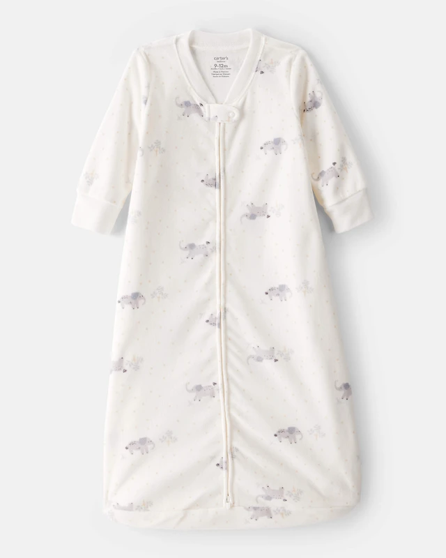 Baby Elephant Print Long-Sleeve Wearable Blanket - White