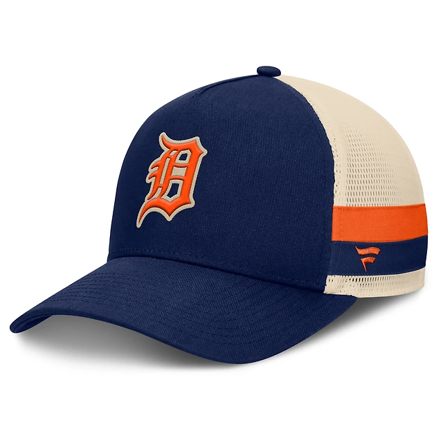Men's Fanatics Navy/Natural Detroit Tigers Inherited Side Stripe Trucker Adjustable Hat