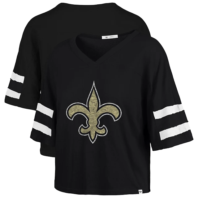 Women's '47 Black New Orleans Saints Premier Scout Cropped V-Neck T-Shirt