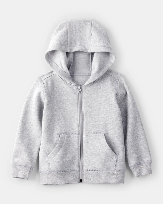 Toddler Boy Solid Fleece Long-Sleeve Zip Hoodie - Grey
