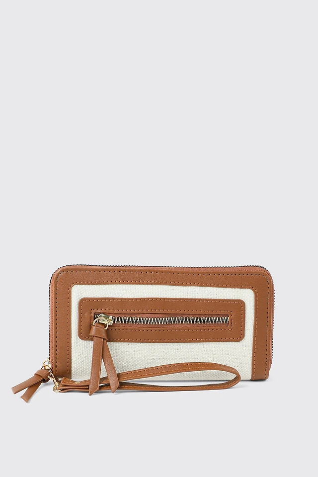 Ardene Faux Leather Trim Canvas Accordion Wallet in Cognac | 100% Recycled Polyester/Faux Leather | Eco-Conscious
