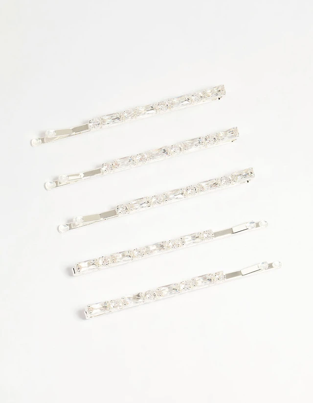 Silver Plated Cubic Zirconia Baguette Vine Drop Earrings