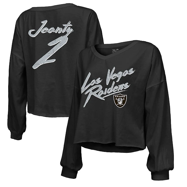 Women's Majestic Threads Amon-Ra St. Brown Blue Detroit Lions Name & Number Off-Shoulder Script Cropped Long Sleeve Relaxed V-Neck T-Shirt
