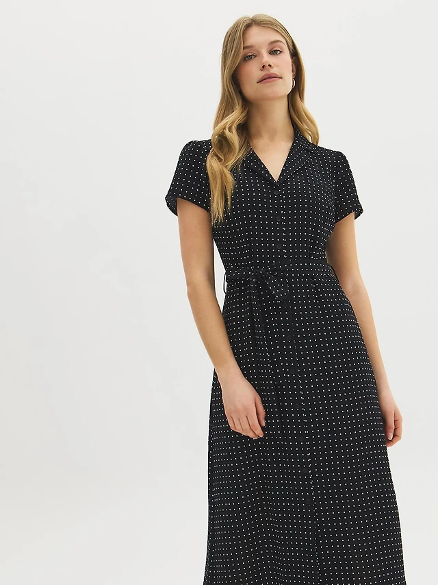 Patterned Belted 3/4 Sleeve Midi Dress - Black
